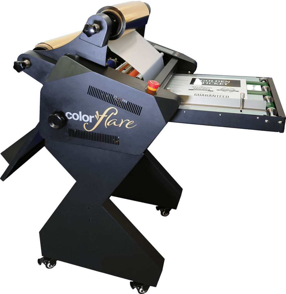 The CF400 is a compact, desktop dual laminator and foil flaring device, for short-run in-house decorative effects on digitally printed sheets, as well as lamination for traditional litho output. The optional stand makes this a floor-standing mobile device.